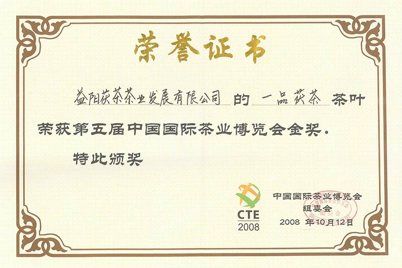 第五屆中國(guó)國(guó)際茶博會(huì)金獎(jiǎng)