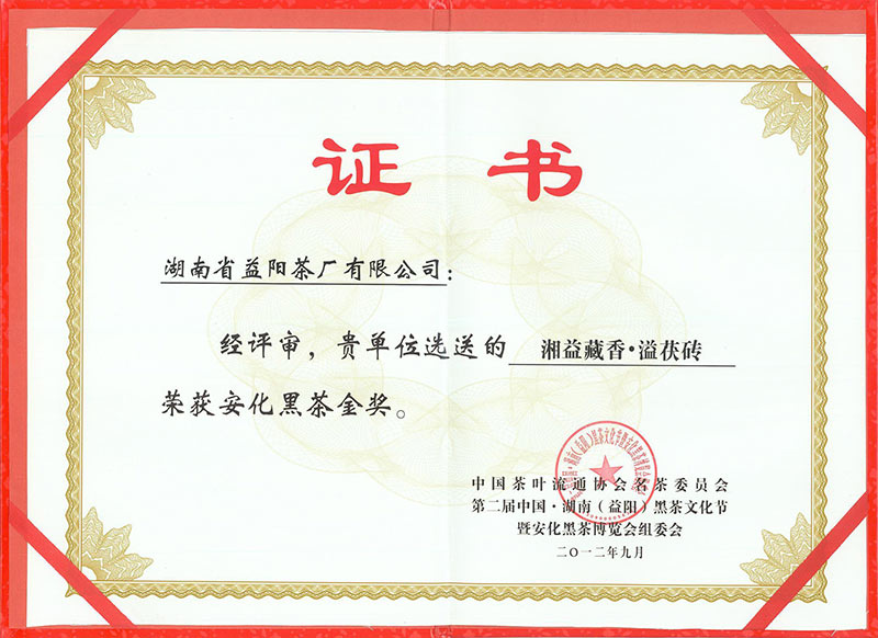 第二屆中國湖南黑茶文化節(jié)金獎(藏香·溢)