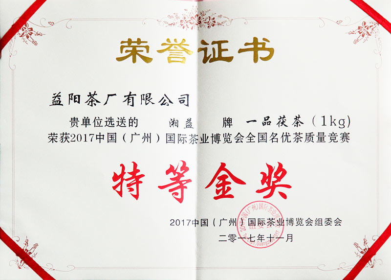 中國(廣州)國際茶葉博覽會特等金獎
