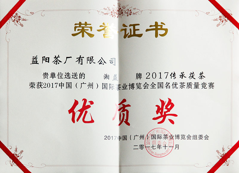 中國(廣州)國際茶葉博覽會(huì)優(yōu)質(zhì)獎(jiǎng)