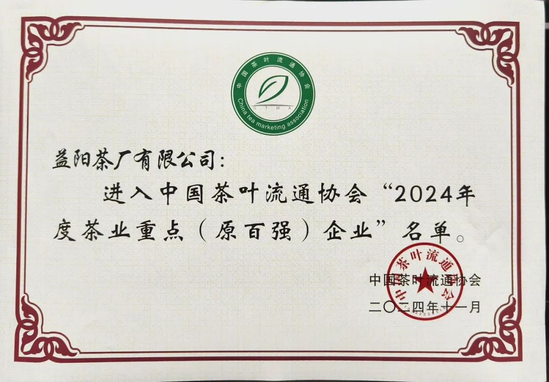 益陽(yáng)茶廠有限公司榮獲“2024年度茶業(yè)重點(diǎn)企業(yè)”