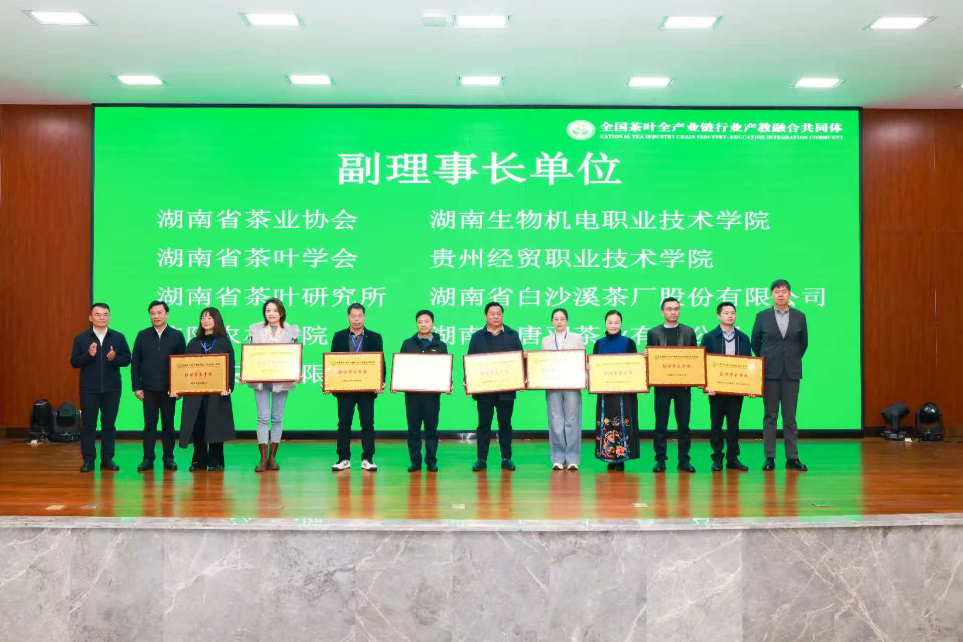3月30日,全國茶葉全產(chǎn)業(yè)鏈行業(yè)產(chǎn)教融合共同體成立大會暨第一屆理事會議在湖南長沙舉行。湖南省政協(xié)副主席、民盟湖南省委員會主任何寄華,湖南農(nóng)業(yè)大學(xué)黨委副書記陳光輝,湖南省供銷合作總社總經(jīng)濟(jì)師尹寄武等行業(yè)領(lǐng)導(dǎo)及專家出席會議現(xiàn)場。益陽茶廠有限公司當(dāng)選為共同體副理事長單位,公司總經(jīng)理余智勇,國家級非遺茯茶制作技藝傳承人、首席專家劉杏益代表企業(yè)出席大會。