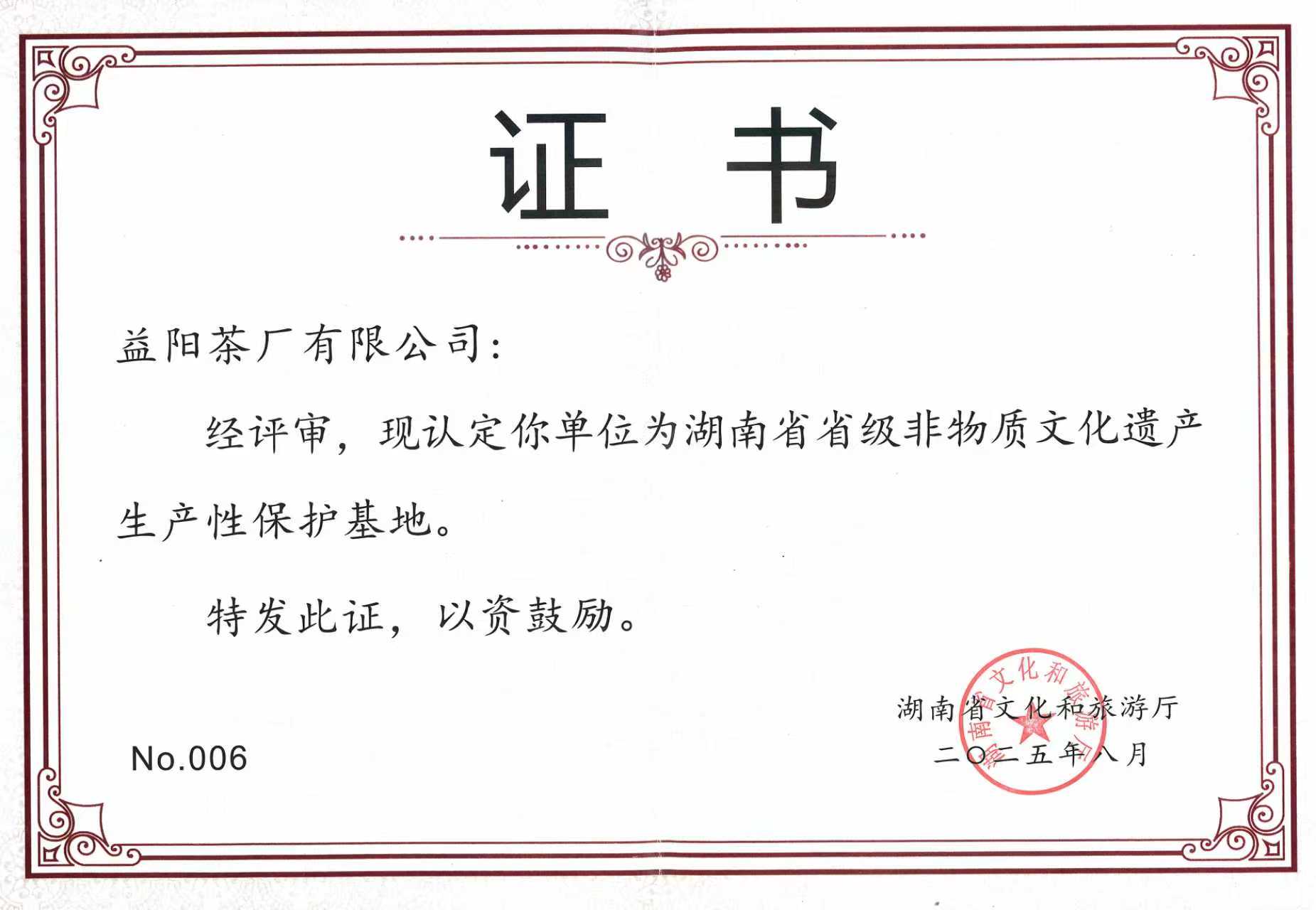 茯磚茶制作技藝于2008年被列入國家級(jí)非物質(zhì)文化遺產(chǎn)代表性項(xiàng)目名錄,公司是國家非遺茯磚茶制作技藝唯一傳承保護(hù)單位。2022年,茯磚茶制作技藝并入“中國傳統(tǒng)制茶技藝及其相關(guān)習(xí)俗”被列入聯(lián)合國教科文組織人類非物質(zhì)文化遺產(chǎn)代表作名錄。