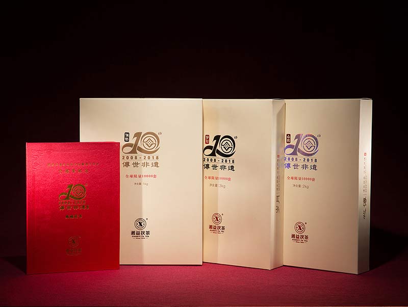 此款組合紀(jì)念茶限量收藏禮盒套裝為隆重紀(jì)念茯磚茶制作技藝列入國家非物質(zhì)文化遺產(chǎn)保護(hù)名錄十周年包含“歲月3kg”、“心傳2kg”、“領(lǐng)悟1kg”三塊精制手筑茯磚,每套均有劉杏益大師親筆簽名,并配備有獨(dú)立收藏編號的典藏證書,共10000套,收藏品飲價(jià)值皆宜。